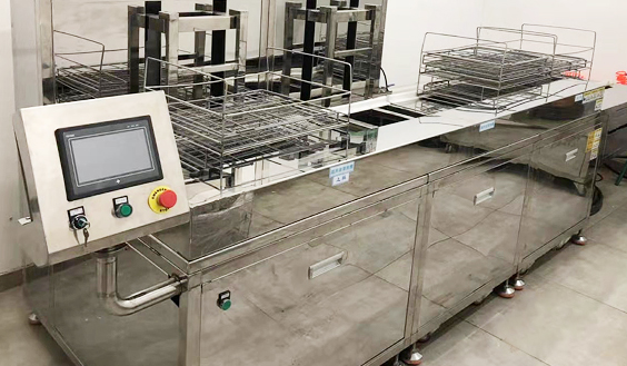 自動超聲波清洗機清洗模式基本相同。對于五金件,一般是超聲波清洗,超聲波漂洗,清水漂洗,風切,然后烘干隧道爐。所有清洗節拍由PLC終端控制系統控制,輸送系統采用機械臂搬運籃筐進行清洗。全自動超聲波清洗機清潔時,注意以下事項:復位鍵只在手動狀態